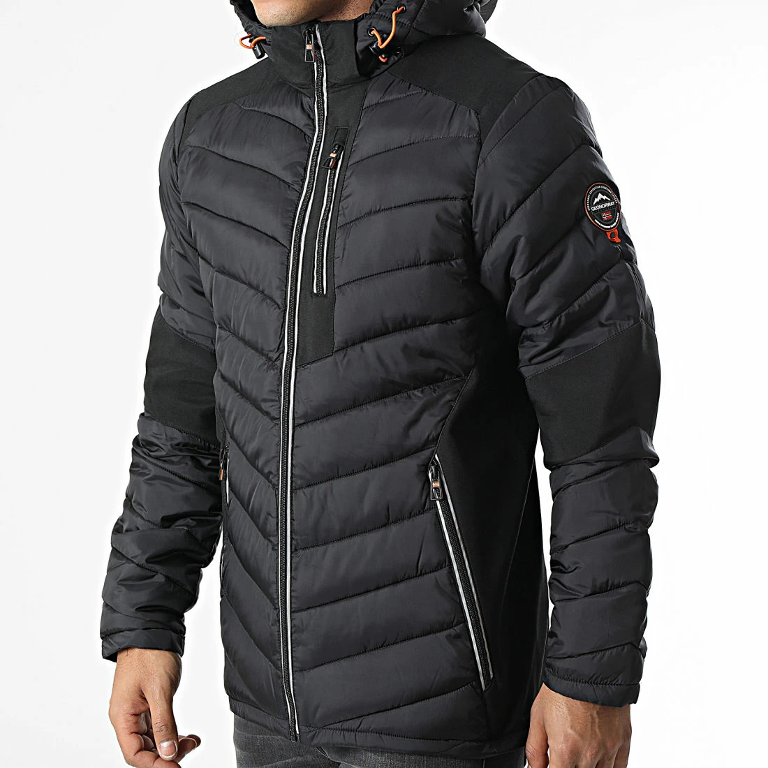 • Doudoune capuche chaude bi-matière