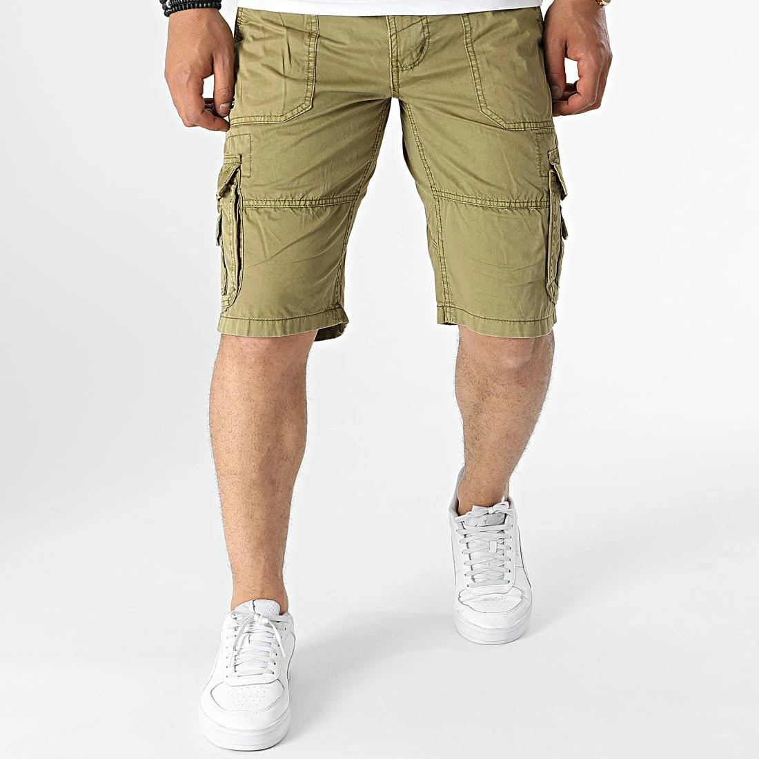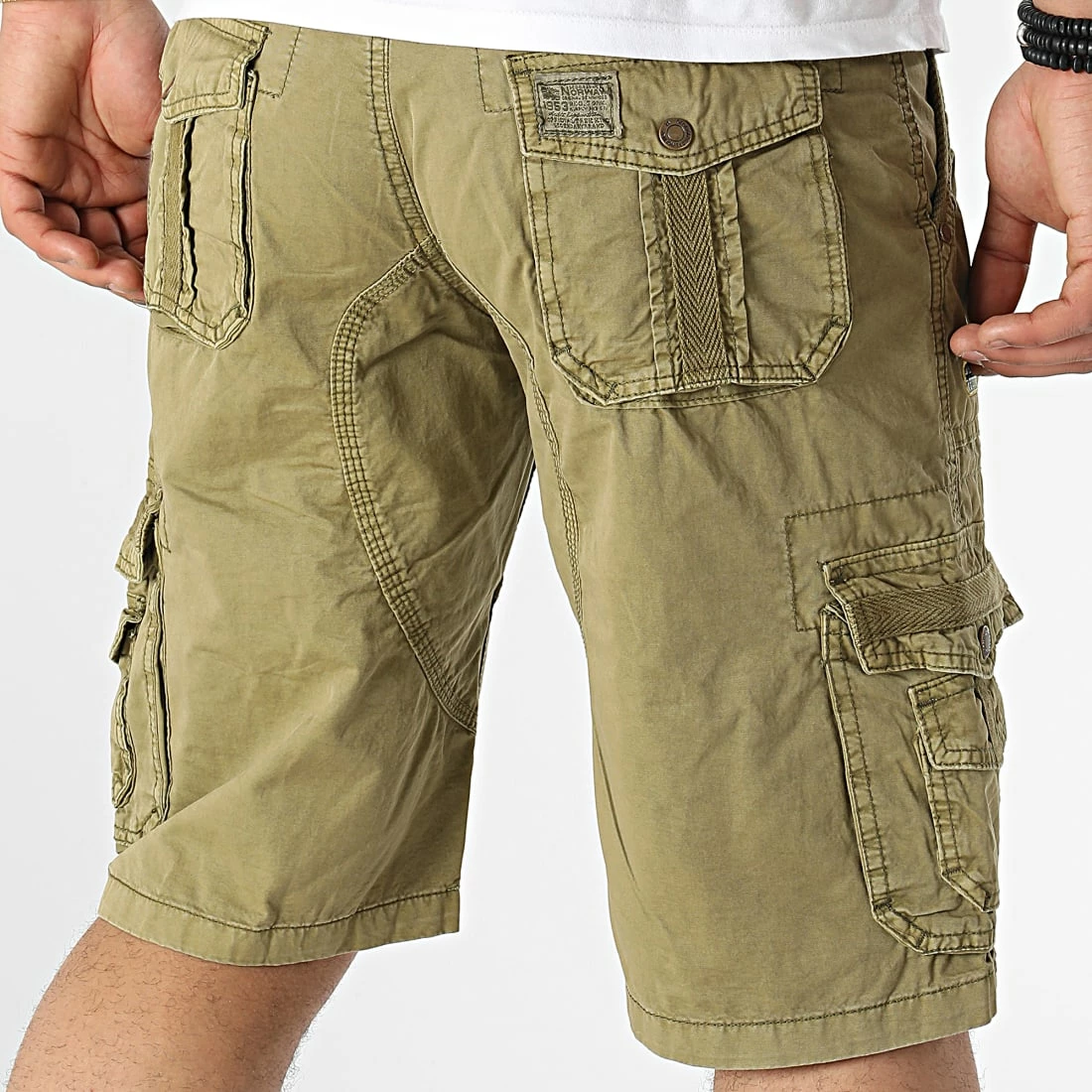 • Short cargo tendance en coton uni avec broderies