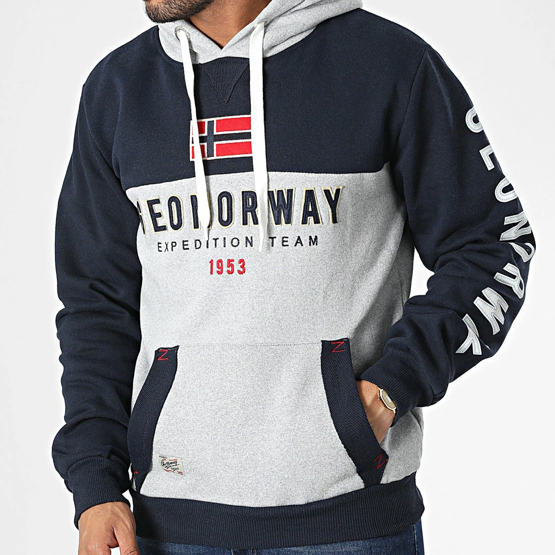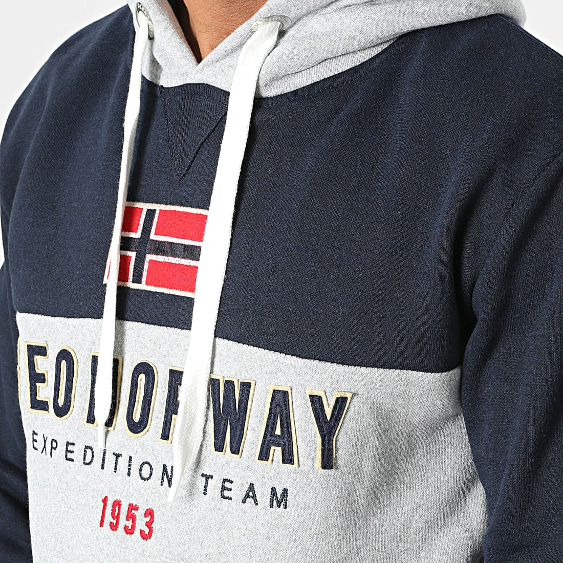 • Sweat capuche bicolore tendance avec visuel Geographical Norway brodé