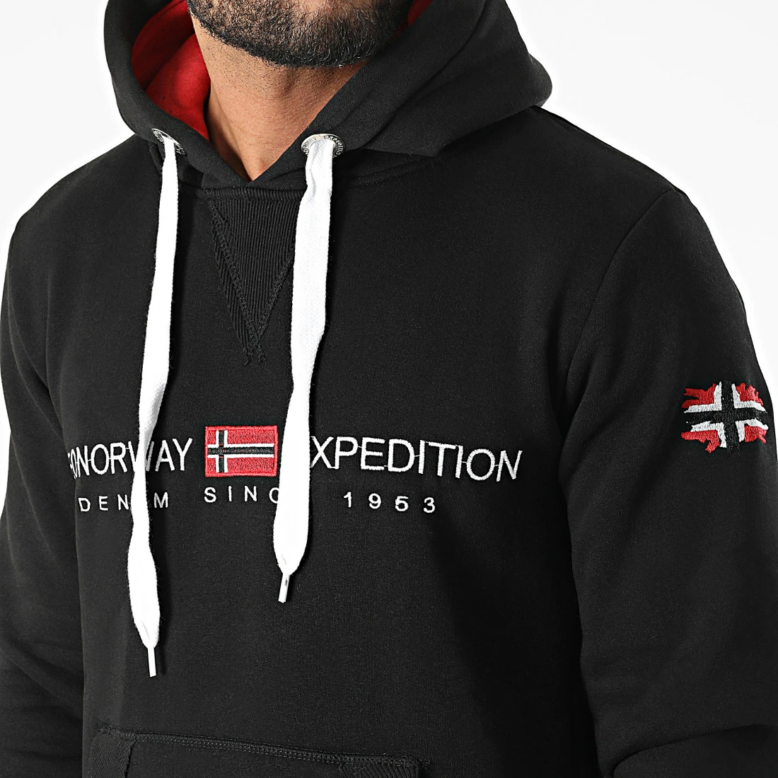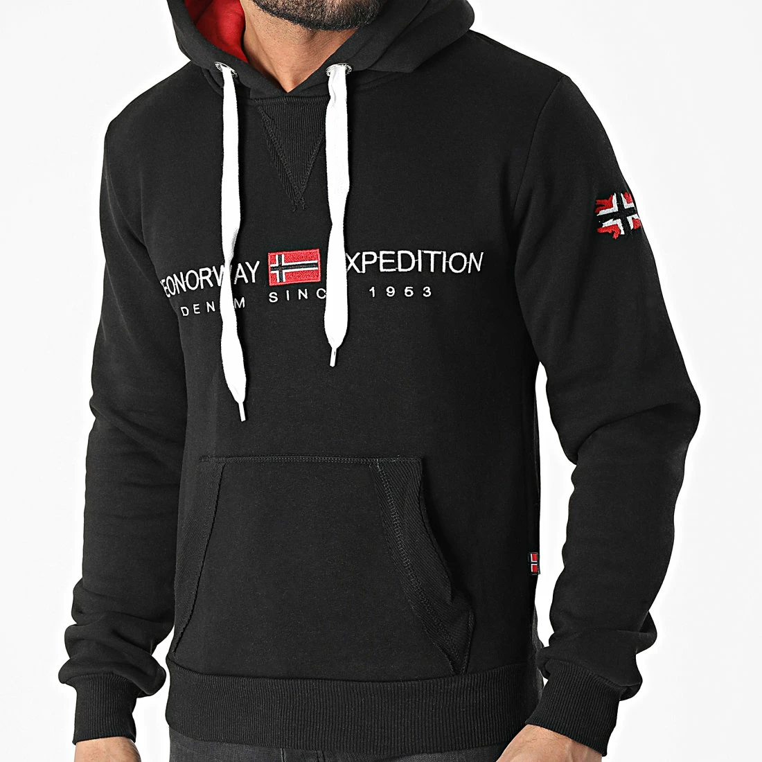 • Sweat capuche brodé visuel Geographical Norway à l’avant et sur la manche