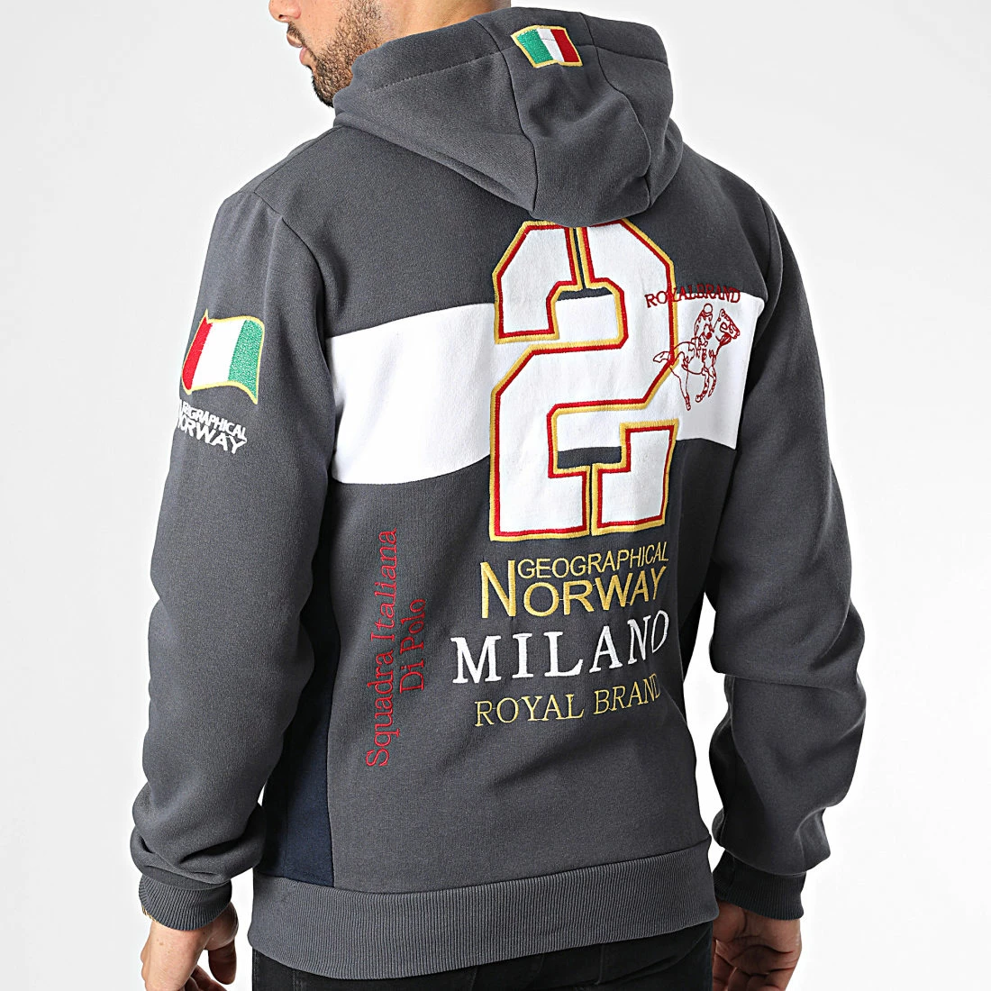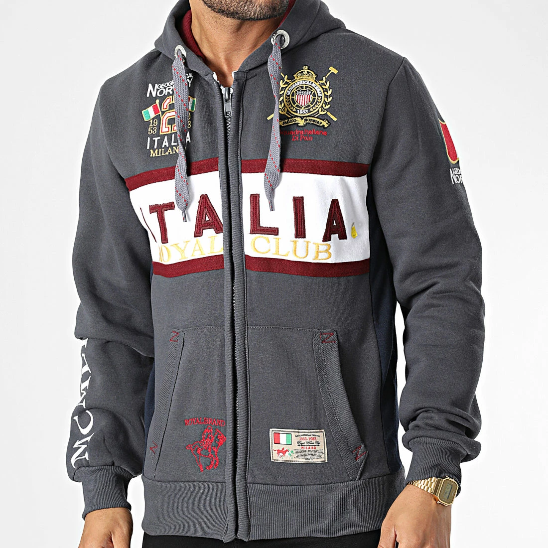 • Sweat zippé capuche tendance avec visuels Geographical Norway brodés