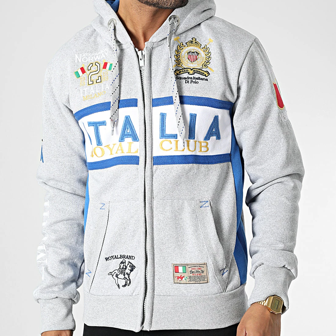 • Sweat zippé capuche tendance avec visuels Geographical Norway brodés
