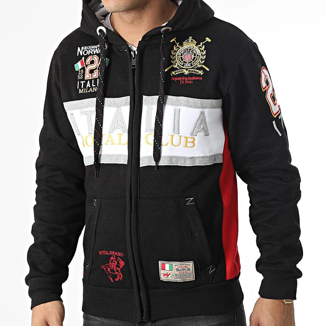 • Sweat zippé capuche tendance avec visuels Geographical Norway brodés