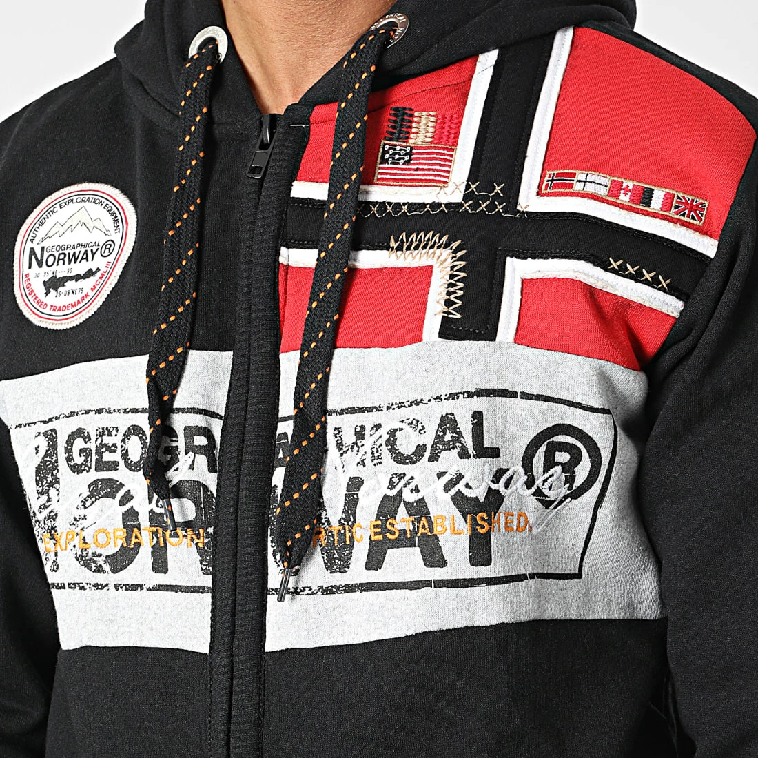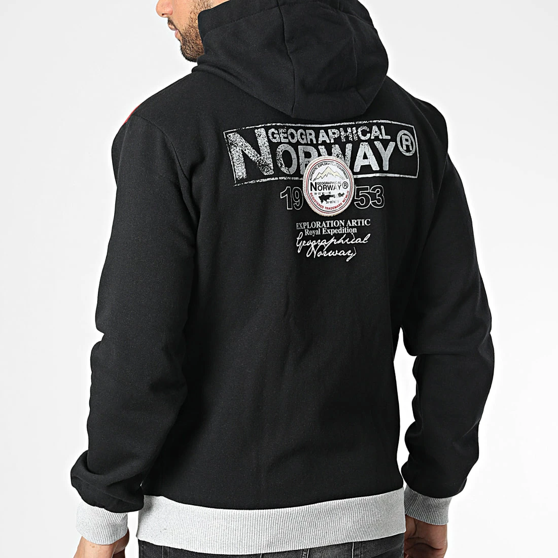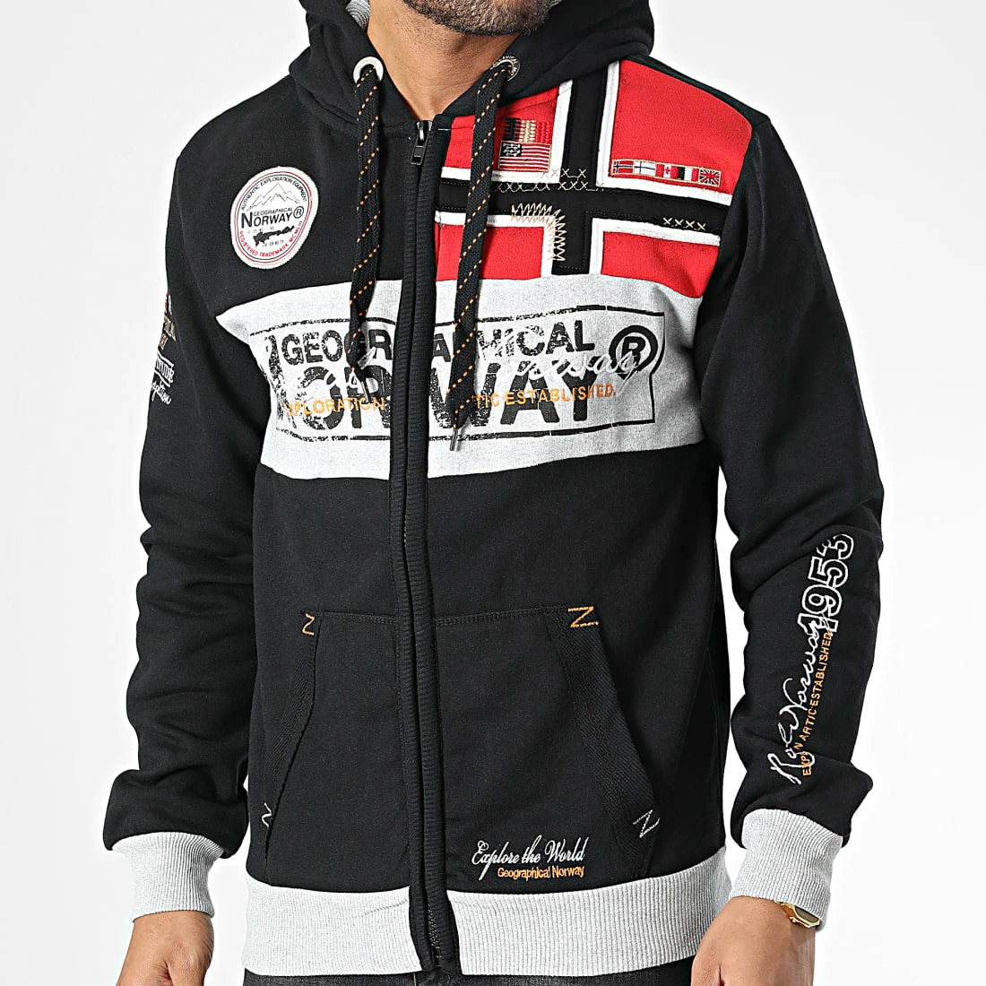 • Sweat capuche zippé brodé Geographical Norway sur l’avant et les manches