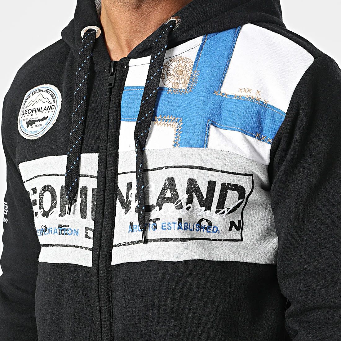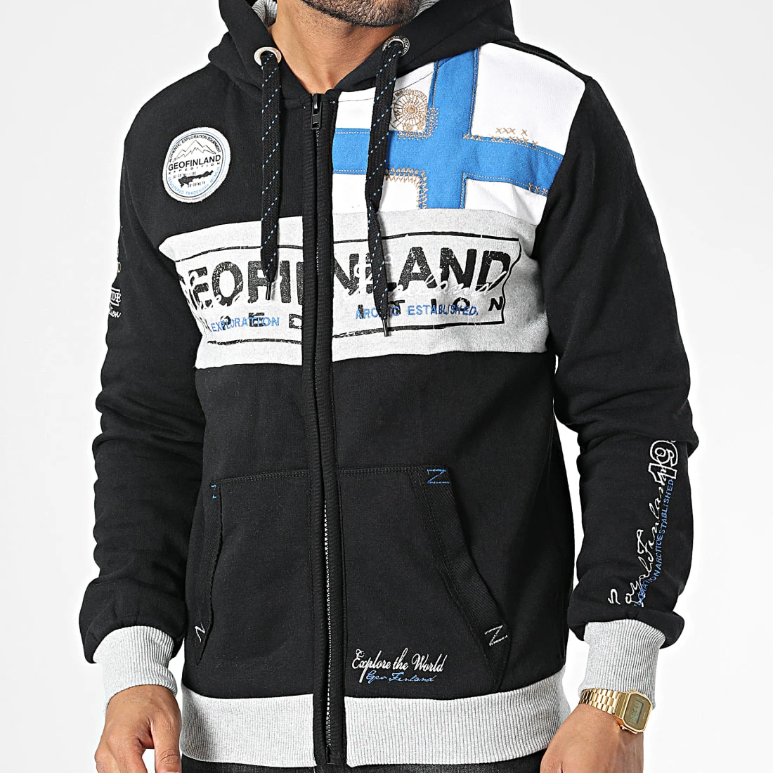 • Sweat zippé capuche tendance avec visuel Geofinland appliqué et brodé