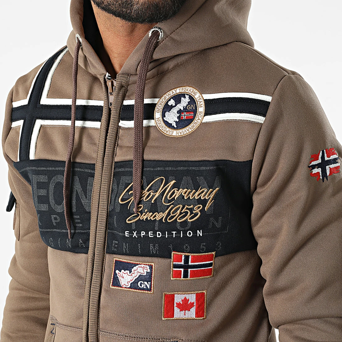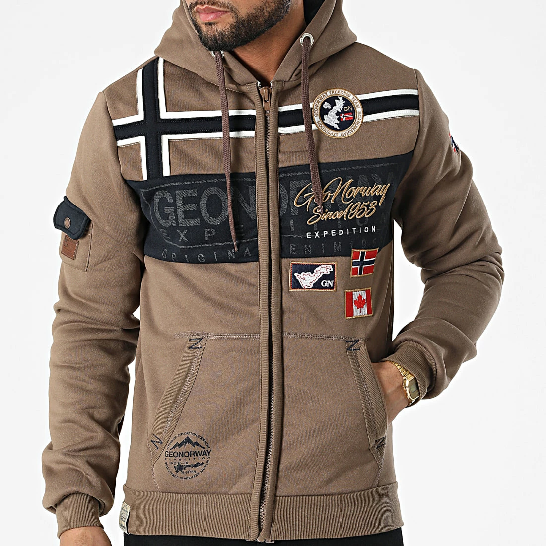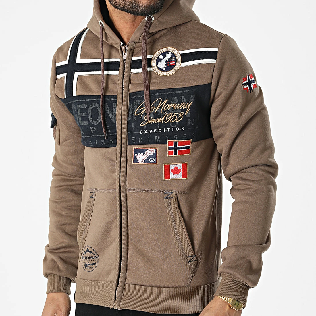 • Sweat zippé capuche brodé visuels Geographical Norway sur l’avant et la manche