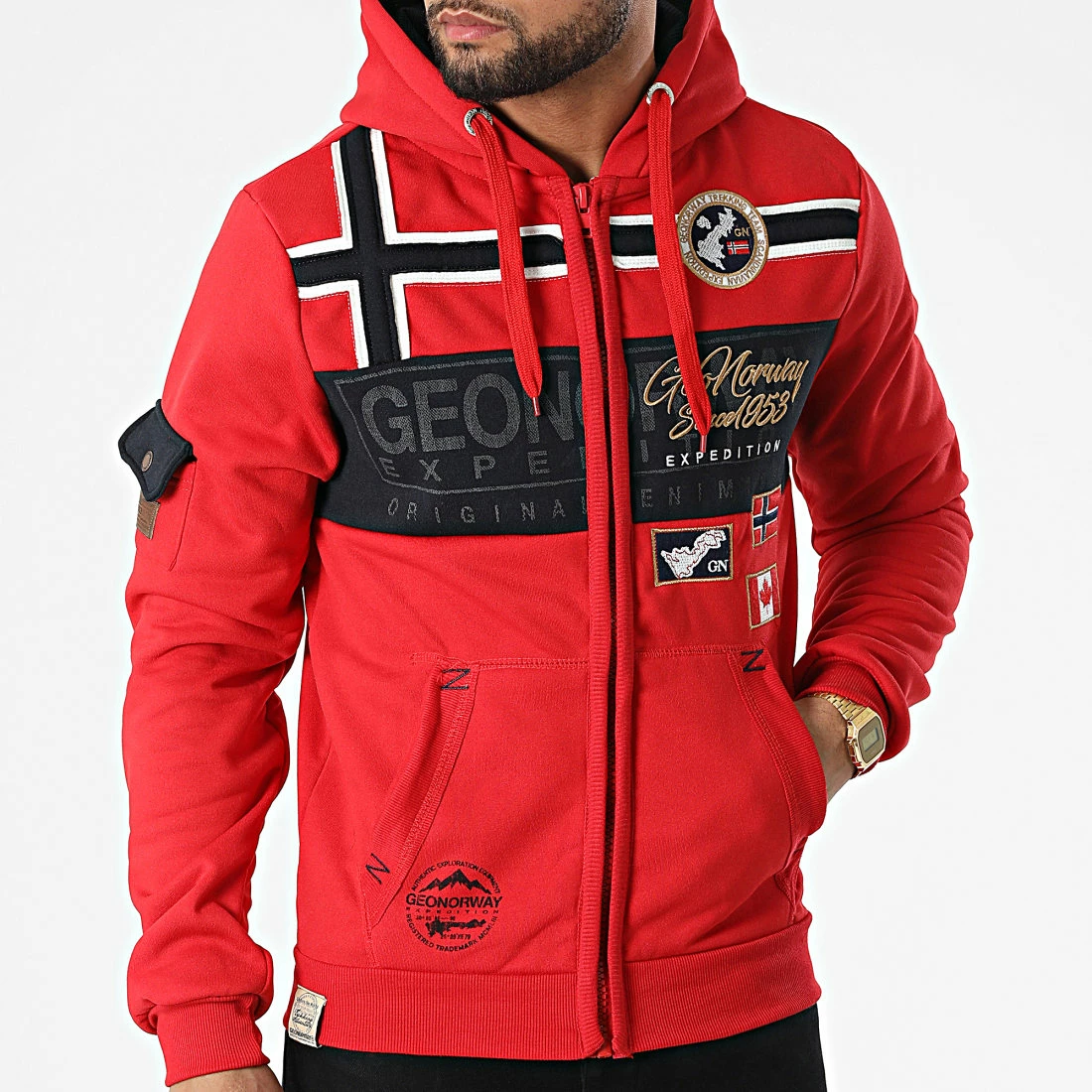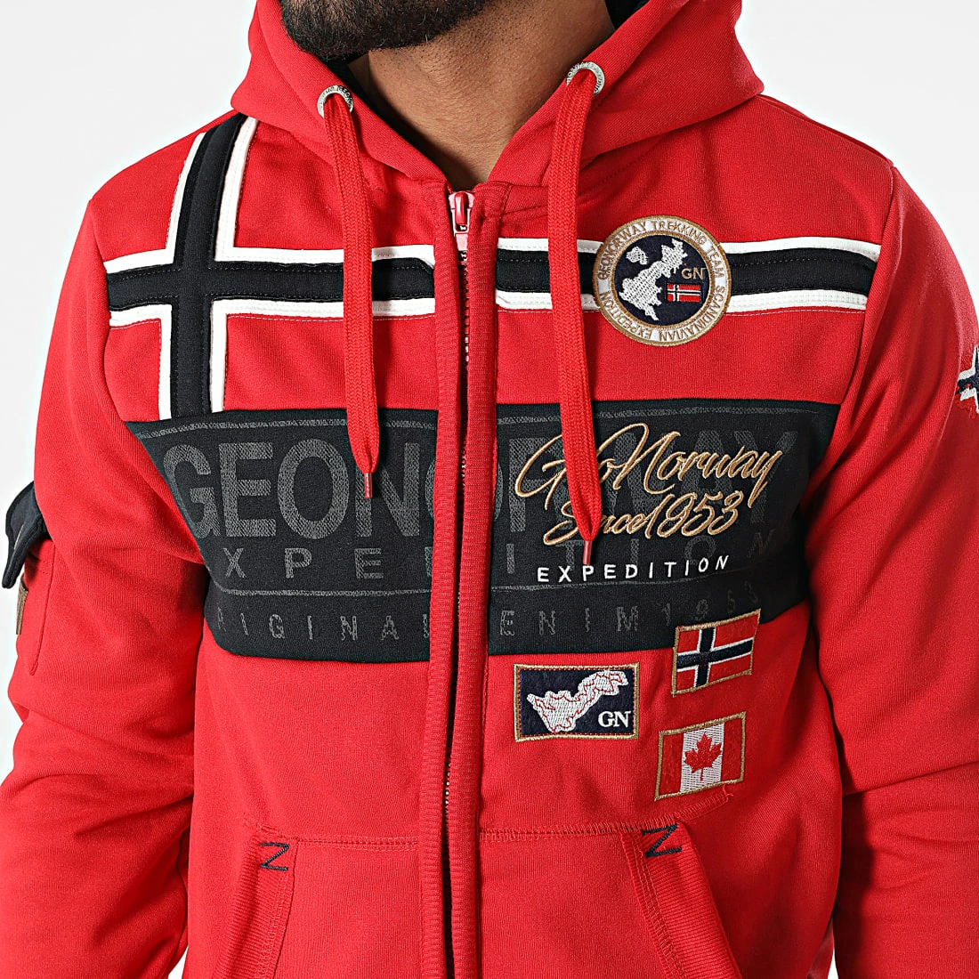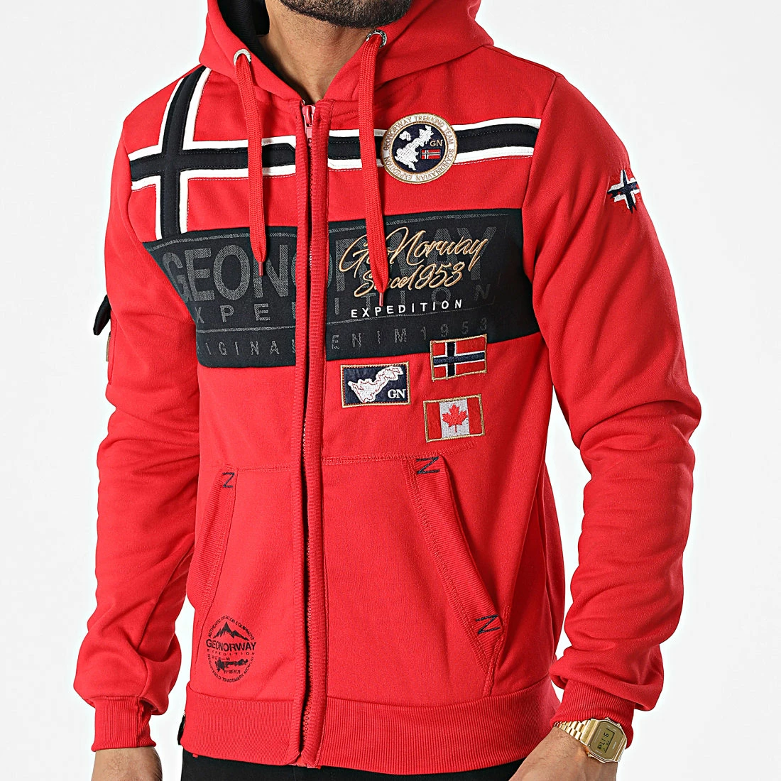 • Sweat zippé capuche brodé visuels Geographical Norway sur l’avant et la manche