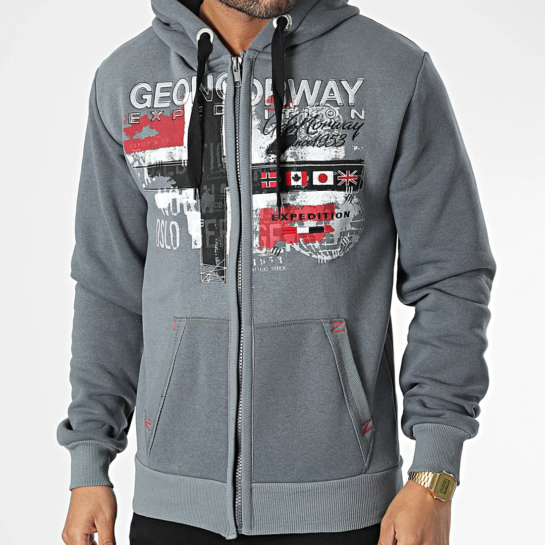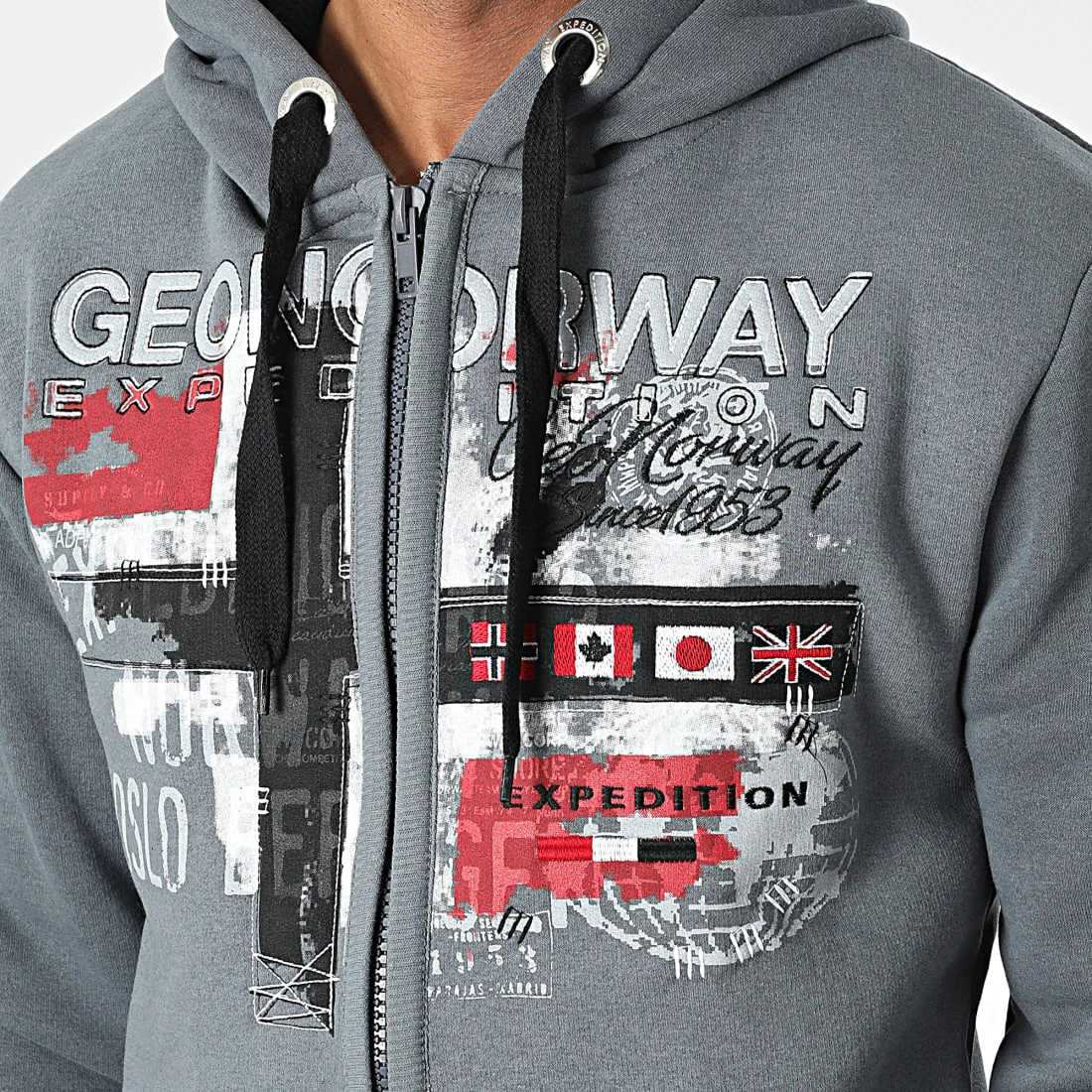 • Sweat zippé capuche tendance avec visuel Geographical Norway imprimé et brodé