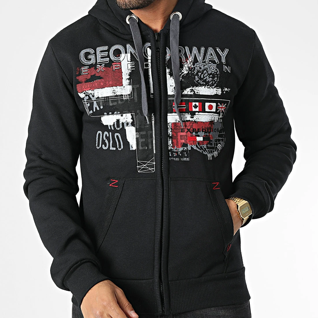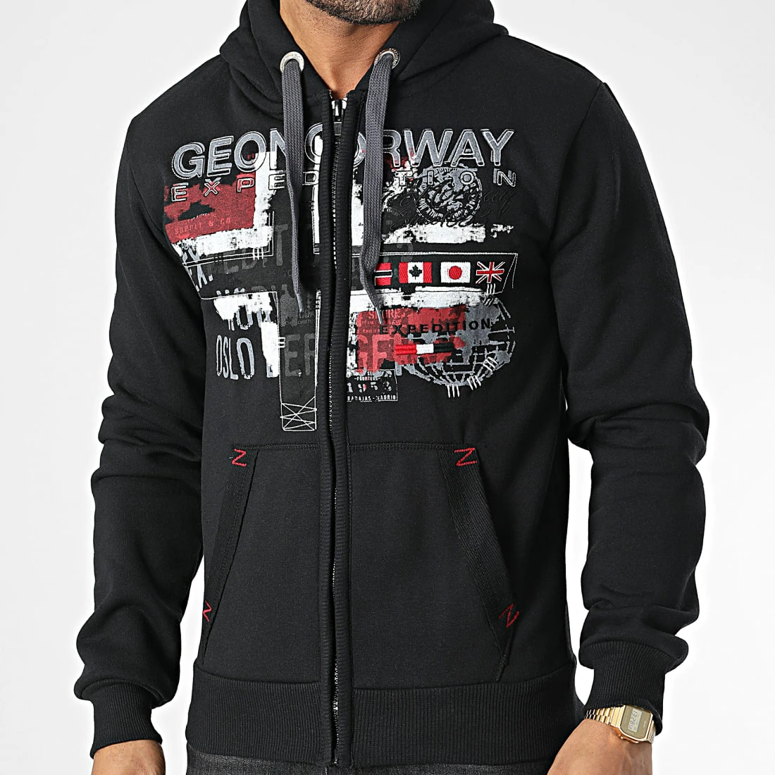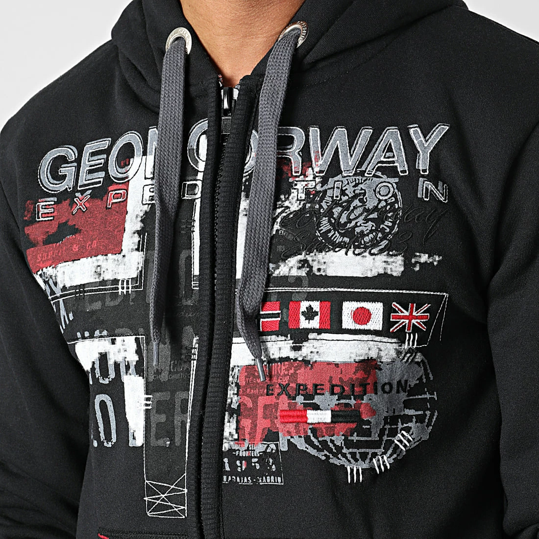 • Sweat zippé capuche tendance avec visuel Geographical Norway imprimé et brodé
