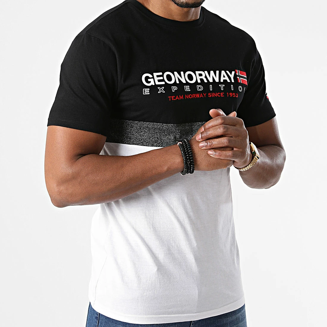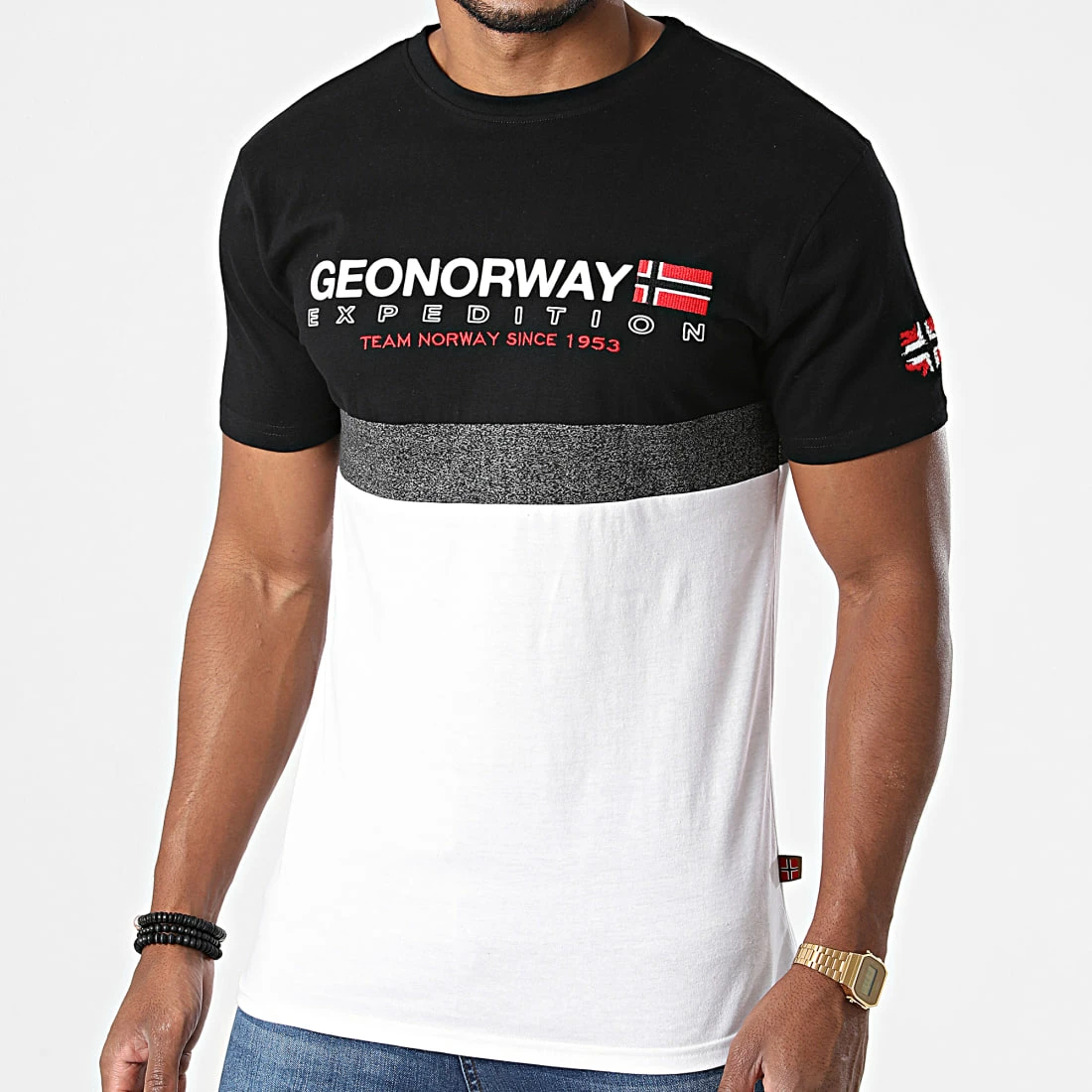 • Tee shirt tricolore avec visuel Geographical Norway à l’avant